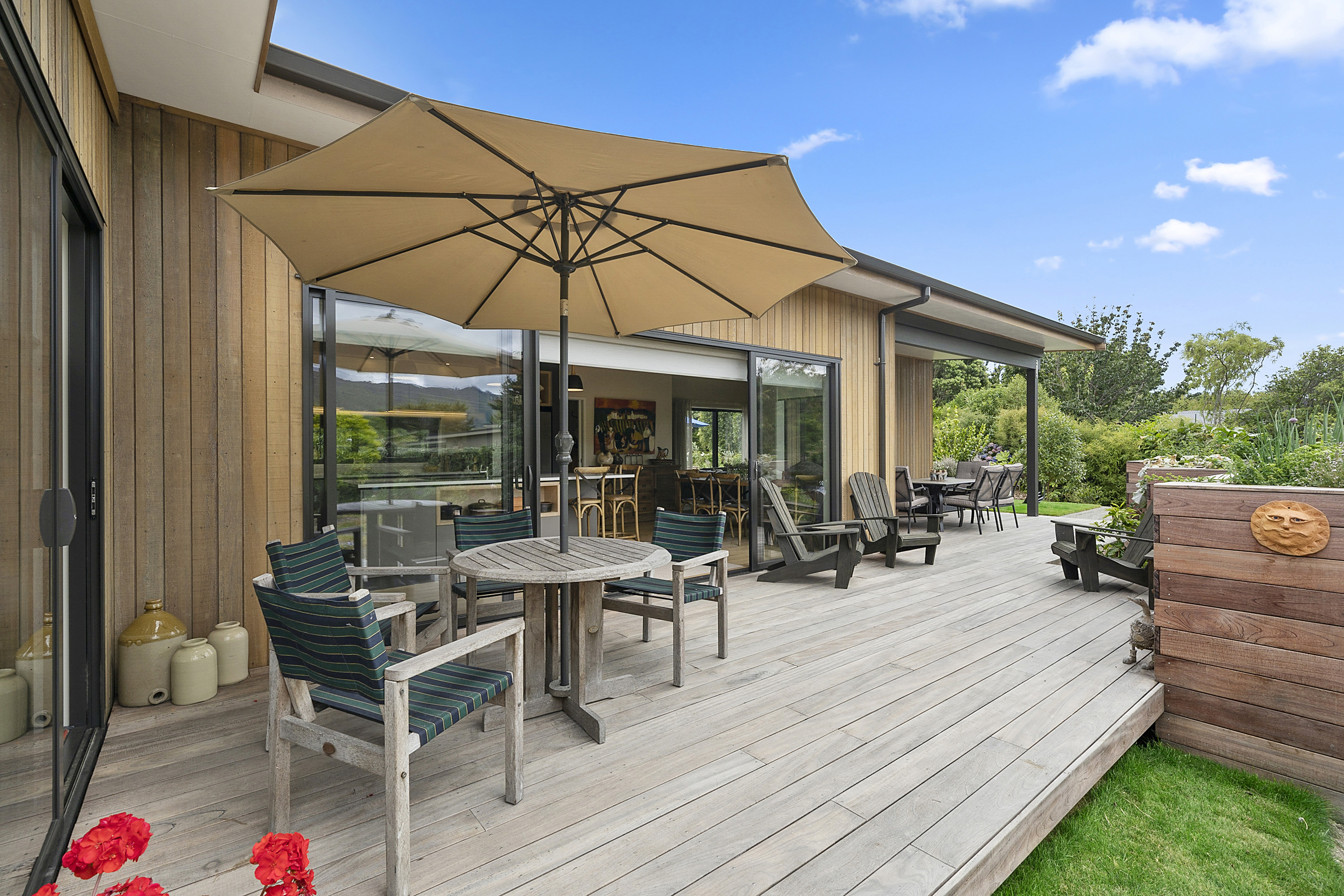 Architect Peter Davis thoughtfully designed the home to capture all-day sun. It seamlessly flows from the indoors out, ticking another box for outdoors-loving Anne. And on the spacious deck, the custom-made timber planter boxes are a low-maintenance way to keep Anne’s green thumbs busy.